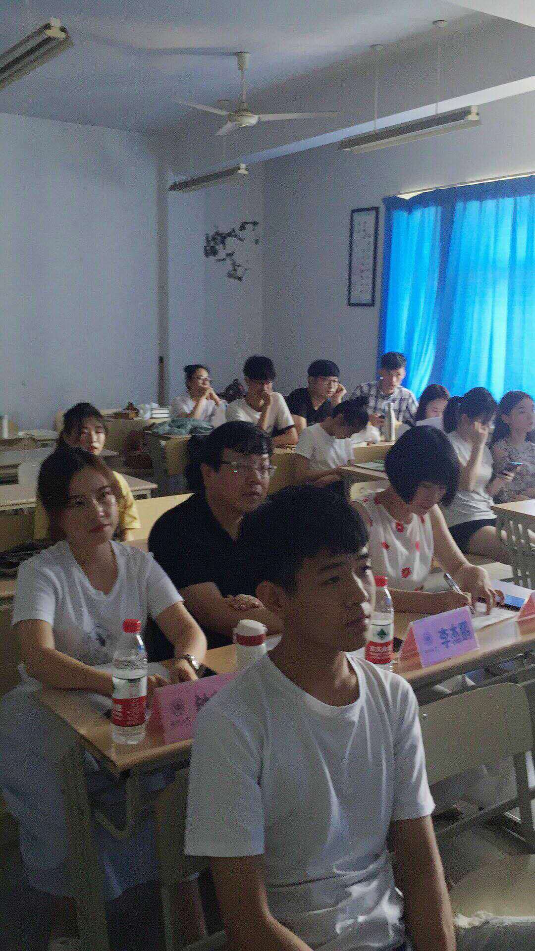 讲话结束后,在外语楼409教室进行 15级音乐学(师范)师范生技能单项奖比赛暨实习优秀生评比及暑期师范生技能集训选拔比赛。本次比赛进行模拟上课和自弹自唱两个项目,共有三十名参赛者。参赛者按照抽签顺序上台分别进行十分钟模拟上课和三分钟自弹自唱。模拟上课时参赛者们表现得体,内容引人入胜,台下学生反响热烈;演奏曲调和谐,歌声余音绕梁,各自弹唱都有其自身的特色。
