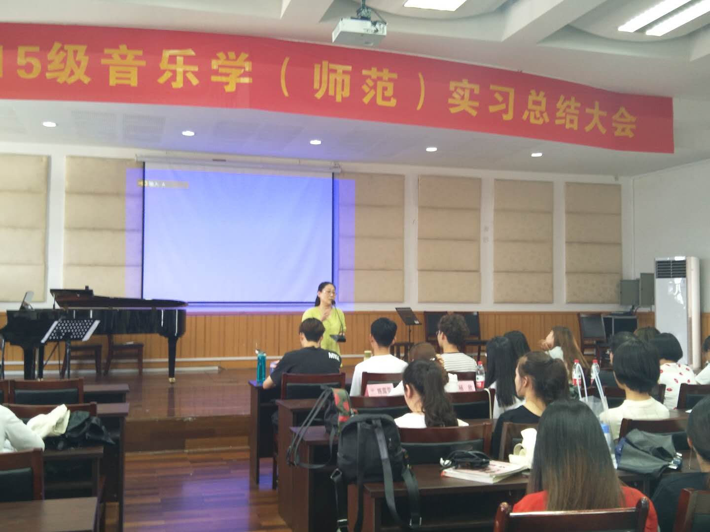 会议由实习指导老师王秀敏对本次15级音乐学(师范)学生实习工作进行了总结讲话,肯定实习学生们的优异表现,并对学生们的将来寄予了厚望。
