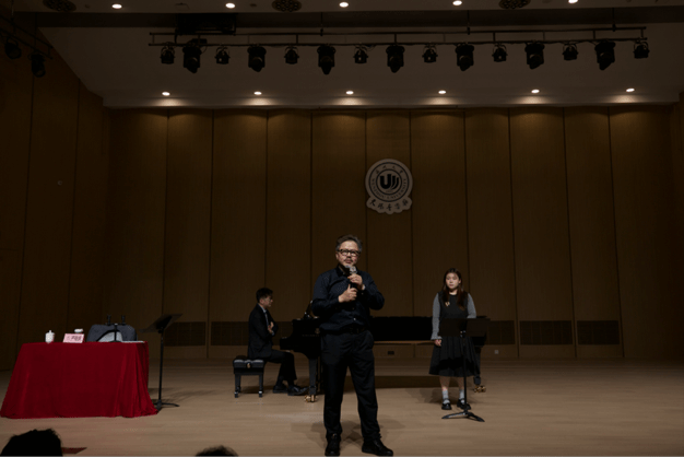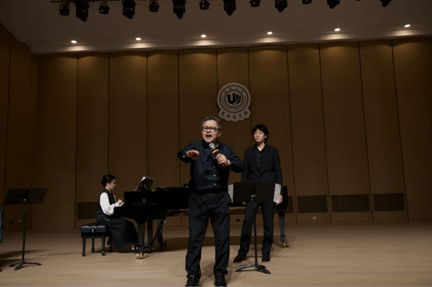 声乐系主任叶文辉教授主持。讲座以“歌唱中的发声、语言与情感表达关系”为核心主题,为在场学子带来系统性的专业指导,现场反响热烈。