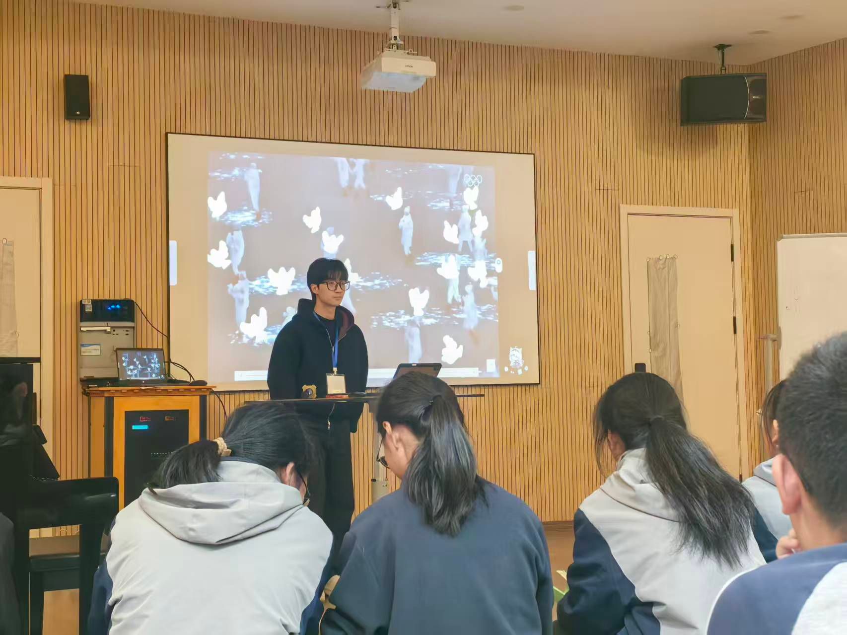除常规听课外,见习活动还涵盖了丰富的拓展内容。李乐瑶老师的《“五育融合”视角下戏剧教育的实践研究》讲座,深刻阐释了戏剧教育作为五育融合载体的独特价值,为音乐教学提供了跨学科的思考维度;“追星,成为星”主题班会课,通过趣味互动、理性辨析、成长规划等环节,引导学生将偶像崇拜转化为成长动力,让见习生们领略了班主任工作的育人智慧;