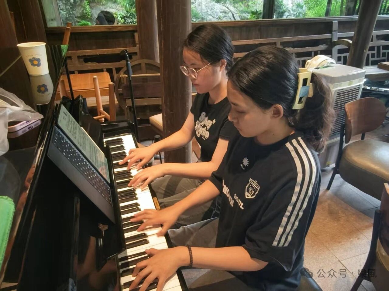 的师生深入楠溪江畔,用跳动的音符唤醒静谧的乡村小径。