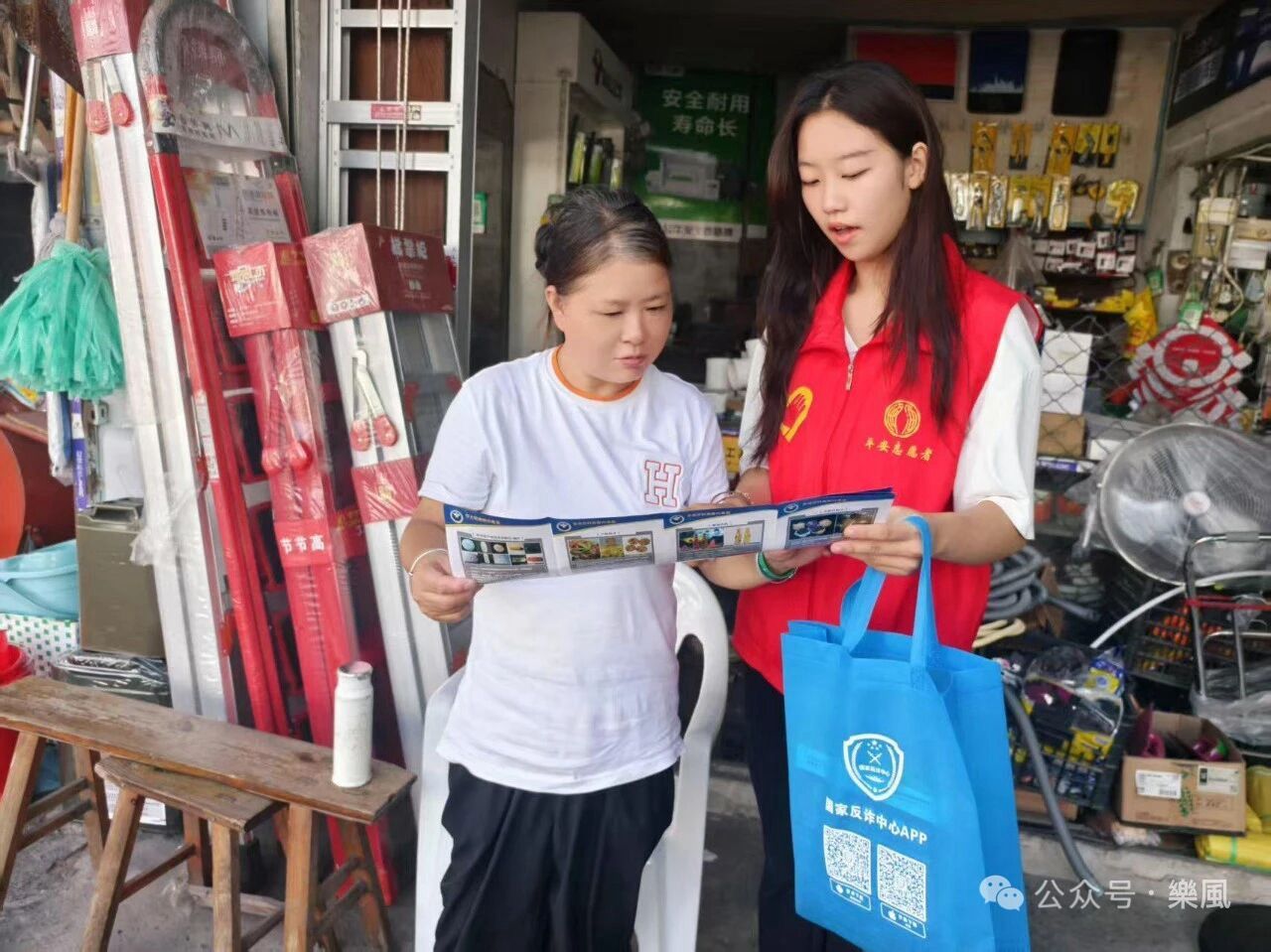 太阳渐渐西斜,传单发出去了大半,手册也被翻得卷了边。有位大叔临走前特意回来说:"你们这个讲堂好,不像以前光发纸,听民警讲案例、看你们演情景,我这脑子才算记牢了。"队员们相视一笑,额头上的汗滴落在传单上,晕开了一小片墨迹,却让那句"艺起反诈,守护平安"显得格外清晰。