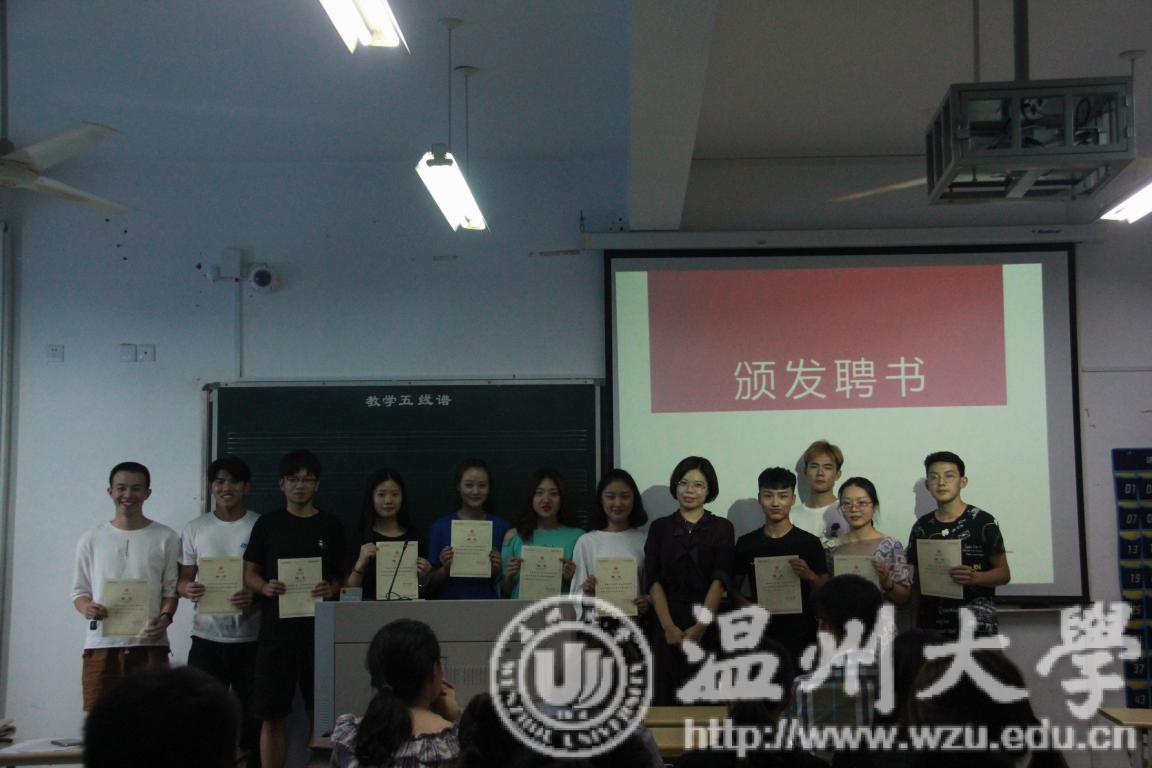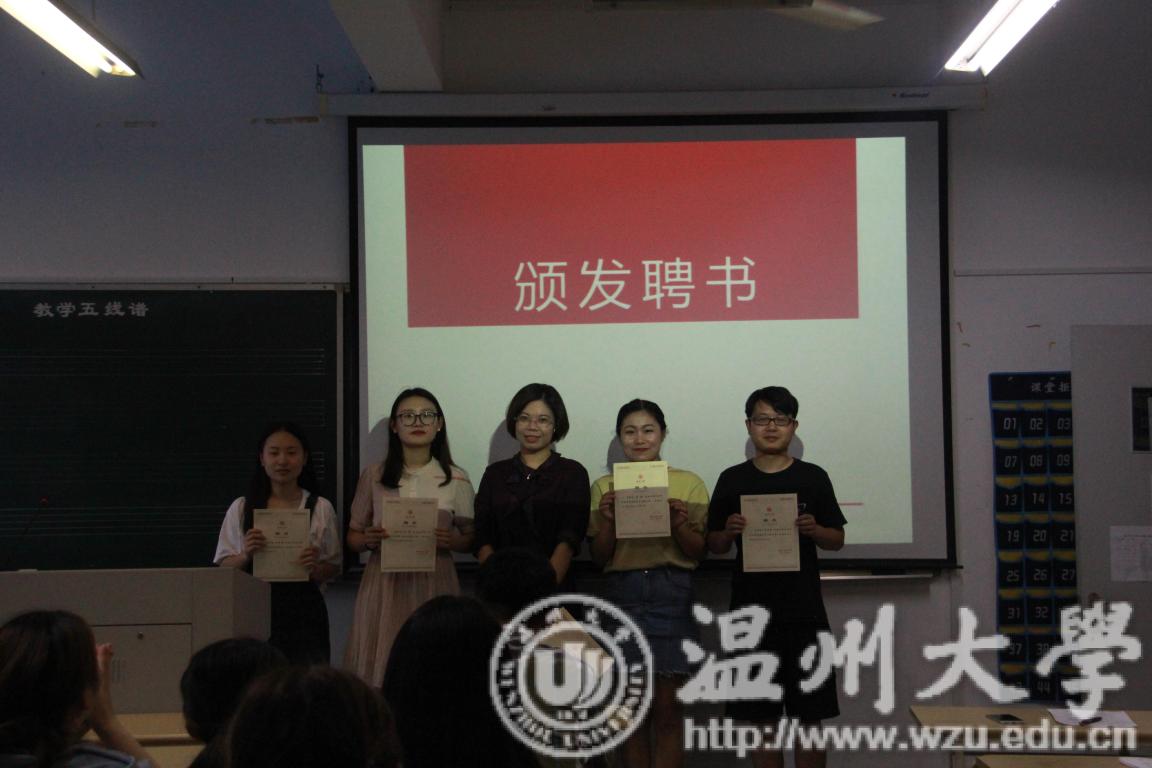 团委书记林海红老师为上一届团委学生会主席团、各部长分别颁发工作聘书,并充分肯定了上一届团委学生会的工作。