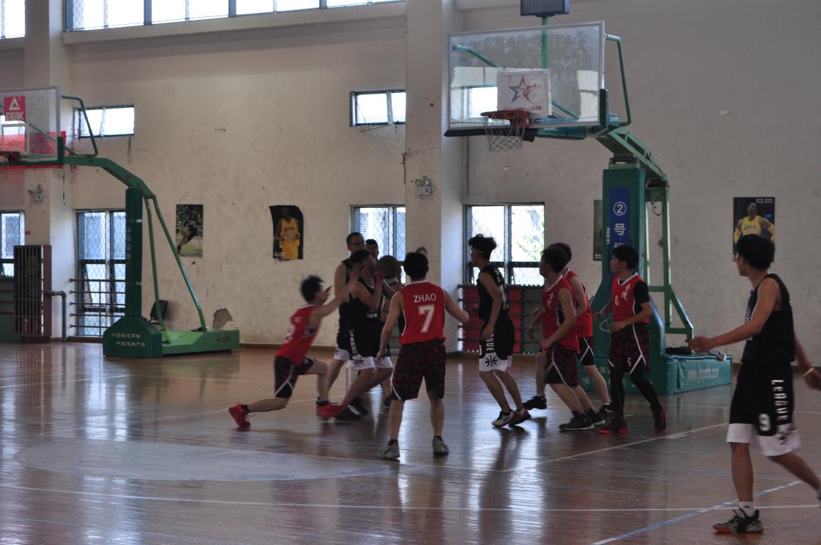 的选手们强大的气场让对方不知所措,阵脚大乱,对方不甘示弱强,双方激烈角逐,以2比8的分数掀起了上半场的高潮。场上篮球健儿们穷追猛打,气势如虹。场下拉拉队员们也不甘落后,加油声、呐喊声响彻云霄。随着啦啦队的加油打气,我院篮球健儿改变进攻方式,配合越发默契拉近了分数的差距12比16双方的开始了拉锯战。