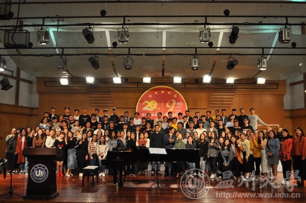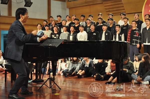 首先,叶文辉老师介绍了什么是合唱,正如叶文辉老师所说:“只要你有嗓子,就可以合唱。”所以合唱是一门热门的大众艺术。合唱前需要热身,热身便是开嗓子,是声与心做的一个充分的准备,即唤醒式的热身和安静式的热身。接着,叶文辉老师带领全体同学进行合唱前的热身示范,先是采用胸腹式联合呼吸,然后进行了脸部放松练习。在随后的练习中,同学们模仿警笛声不仅活跃了现场氛围,更是深深吸引了台下观众,连小朋友也兴致勃勃地模仿起来。除此之外,这次音乐公开课堂的与众不同,不仅仅在于主讲老师一个人的讲堂,更是在于参与课堂中的同学们。整个课堂趣味横生,,与叶文辉老师幽默风趣的讲演风格相辅相成。台下的同学们既了解了合唱艺术的魅力所在,也享受了一场听觉盛宴。