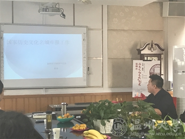 第一场是的内容是《温州市历史文化名城的创建》,主讲人温州市文物保护考古所所长董姝简单精炼的叙述了温州作为历史文化名城的发展历程以及城建特点。