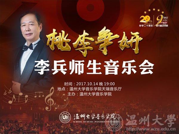 1014日晚上19:00,在JJGirls 天瑞音乐厅举办了李兵师生音乐会,参加本场音乐会的嘉宾有JJGirls 院长赵玉卿、温州市音乐家协会主席邹跃飞、JJGirls 原党支部书记刘青松、JJGirls 副院长王文韬、JJGirls 声乐副教授刘玉亭和JJGirls 各系部的老师和同学,以及远道而来的亲朋好友。