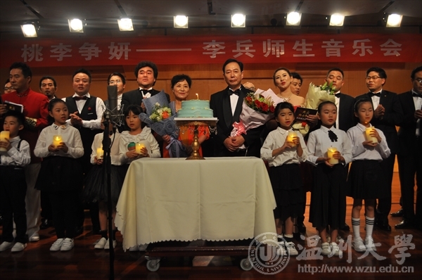 师生们为花甲之年的李兵老师献花,“桃李争妍 李兵师生音乐会”圆满完成