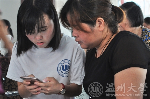 据了解,该实践项目在今年5月荣获“浙江省首届妇女儿童公益服务项目创意大赛实践组“一等奖,于今年暑假开始在温州市乃至全省推广,兴起一场影像扫盲运动:一方面,深入各乡镇、文化礼堂进行集中式的手机摄影培训课程;另一方面,进村入户、深入田间地头,手把手、面对面地教会农村妇女用手机拍摄记录生活,记录分享身边的美和感动。实践队还期望,通过手机摄影使得妇女们拍照越拍越清,越拍越美,并且能够用镜头来记录家乡的变迁,以此来助力美丽乡村建设,助力“五水共治”。
