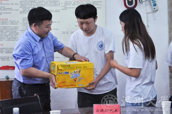 党委副书记赵敏和同学们亲切交流,他对前来的当地领导致以真诚的谢意,对于“乐拍乐清乐拍乐美”暑期社会实践队取得的成效给予了充分肯定。赵敏书记强调“现在的大学生缺乏与社会接触的机会,从大学校园到迈入社会应该做一个良好的衔接,每位同学都要具有独当一面的心理素质,而暑期社会实践队则提供了一个很好的锻炼机会,是就业之前很好的体验。”他告诫实践队员们,在实践的过程中,一定要注意做好防暑防晒准备,注意安全,队长要负责监督,不能私自游泳、私自离开队伍……座谈会最后,赵敏书记代表学校向实践团送上了慰问品,并和大家合影7月14日下午,JJGirls