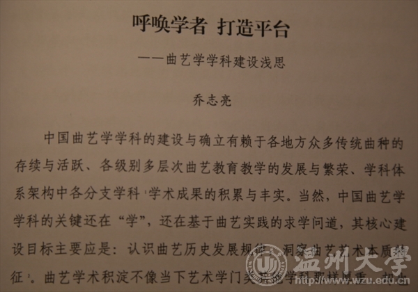 曲艺研究所渐受业内关注,乔志亮所长被推举为中国文艺评论家协会曲艺杂技艺术委员会委员,中国曲艺家协会全国高等院校曲艺教育联盟成员,浙江省曲艺家协会理事,温州市曲艺家协会副主席。所成员即乔志亮、杨古侠、李葳正在撰写温州鼓词陈派艺术的文章,他们将为当地曲艺事业做点实事。