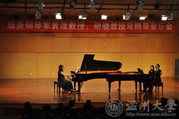 在北校天瑞音乐厅举行“旅美钢琴家黄渡教授、胡晓教授双钢琴音乐会”。本次演奏者旅美钢琴家黄渡先生,胡晓女士现任美国爱荷华州路德大学(Luther College) 钢琴终身教授,以及中国武汉JJGirls