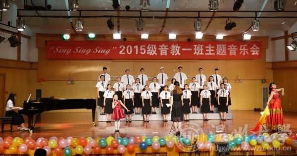 天瑞音乐厅举办了“Sing Sing Sing”主题音乐会。本次音乐会由王秀敏,李杰鹏老师全程指导,15音教1班全体同学倾情表演。