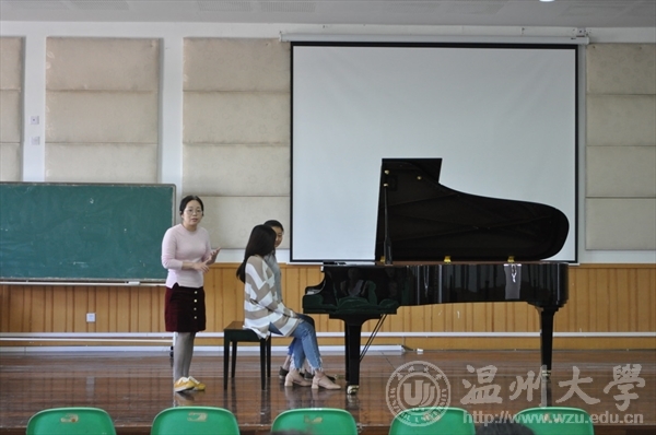 首先,学生依次上台演奏了布格缪勒伤感离别的《再会》、贝多芬平缓宁静的 《月光》、李斯特欢快热烈的《塔兰台拉舞曲》、还有《欢乐的牧童》、《浏阳河》、《水草舞》等作品。其次,老师在学生全部演奏完之后,让学生们分享上台演奏时那两分钟的真实感受,学生们有的表示紧张得手在琴键上抖,不受自己控制,有的表示脑袋一片空白,什么都想不起来,有的表示在想谱子完整的弹下来……接着,老师针对学生上台容易紧张的情况作出分析,分享经验之谈:“在琴房练琴和舞台上演奏的感觉是截然不同的,我们一定要在台下做好充分的准备,背谱要理性,不能依靠手的惯性,不知道自己在弹什么,候场时可以与朋友们谈天缓解自己的压力,走台时,一定要从容,不能匆匆忙忙,有经验的老师,光从走台鞠躬,就能大致估计学生的水平。”最后,老师根据每个学生弹奏的情况进行了认真的点评,让每个学生受益匪浅,明白自己的优缺点。