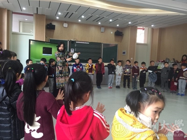 的李葳老师带来,李老师巧妙地将鼓等乐器运用在课堂教学中,使教学内容更加生动有趣,同学们听课聚精会神,全身心投入其中。