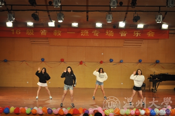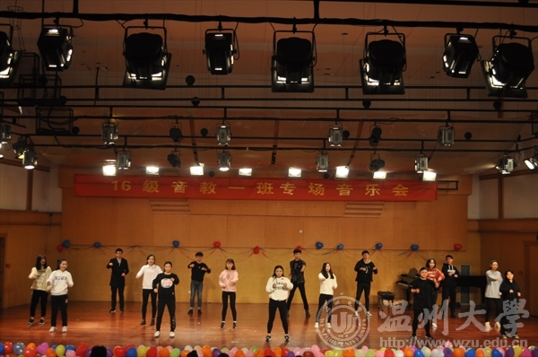 首先,开场舞《SAVE》拉开了16音教1班舞台音乐会的序幕,活力四射,青春洋溢,瞬间让现场活跃起来。接着是王怡欣的《红豆》,熟悉的旋律,动听的歌声,让人脑海中浮现恋人将分手挽留的画面。周妮的《啊!我的虎子哥》充满了激情与爱恋,,是金子心声的吐露同时也体现了一丝丝悲情。蔡诗琪的独唱《祖国之恋》音乐雄壮豪迈,积极向上,表达了对祖国的款款深情和爱恋。除此之外还有朱庆的独唱《月之故乡》委婉含蓄,真挚感人,《知足》。毛颖的《六月船歌》 、王艺博、俞钦、毛颖的三重奏《神秘园之歌》,陈秋江的铜管乐器小号独奏《游击队之歌》,乐队中的王子——小号音色强烈,明亮锐利,极富煽动性。孙梦婷的《独舞》、赵家俊、陆威宇的《最佳损友》、潘晓静的独唱《夜夜夜夜》也精彩纷呈……场下掌声不断。