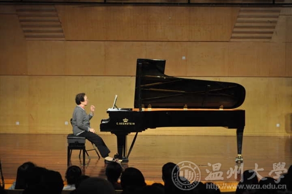 首先,朱雅芬教授讲了有关落指方面的问题,要将自然、舒服与放松结合起来,主要是将放松和紧凑相结合,疏通大部位并且做了示范。然后,教授介绍了有关手型的问题,随着不同的乐曲,学会用灵活的双手,不断的调整、变换手型,手指关节要有活力。接着,又介绍了高抬指的问题,抬指不是越高就是越好,只要能发力,弹得好就行。因为每个人的手型不同、声音要求不同,音乐不同,要学会改变。最重要的是高抬指仅仅是训练,不是演奏要求。最后,朱教授讲了关于如何运用手腕的问题,手腕是手上最灵活的关节,要学会去运用它。手腕可以上下、左右、画着圈地转动。《599》中有很多练习曲的乐句需要运用手腕。教授举了《黄昏》这个例子并且示范,只有运用手腕,才能将朦胧的美表达出来。每个人的手不一样,要学会针对性的去解决一些问题,钢琴老师应该对不同条件的学生,用不同的方法,因人而异。教授还讲到弹琴的时候要明白为什么这样会舒服,技术手法有很多个性的东西,不能一味去模仿,得发挥人无限的能力来适应、来掌控发展,不断丰富、不断改进、不断突破。最好的判断是你自己的感觉,要学会在实践中不断探索,找到最合理有效的办法,不能一味的保守,不能一直停留于原有的办法。