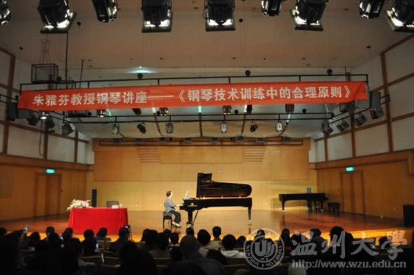 天瑞音乐厅开展了由著名钢琴家、教育家朱雅芬教授的钢琴讲座——《钢琴训练中的合理原则》。讲座开始之前,场下的观众席早已满座,可以想见朱雅芳教授的讲座是多么的吸引人们的眼球。