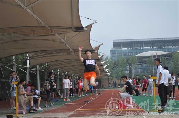 的同学们就带来了非常精彩的方阵表演,并且获得了各个学院的称赞,气势磅礴的口号一下子便点燃了整个赛场的热情。在今天的比赛过程中,我院运动健儿们使出浑身解数,尽情在赛场上挥洒汗水,都取得了令自己满意的成绩。跳远的健儿们好似一只只轻盈的小鸟,落在柔软的沙堆中,跑步的健儿们如离弦的箭,一转眼间已到达终点。赛场内尖叫声此起彼伏,为场上的运动员加油助威。