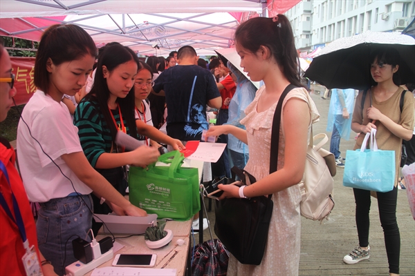 迎接新生之前,团委学生会的学生干部们早已准备就绪,按照既定的安排全面开展迎新工作。新生报到时,工作同学积极主动为他们介绍报到流程,为每一位新生进行特写、合影留念。每个人都有条不紊地进行报到各个环节,学姐学长们也在工作之余为新生解答她们对于新环境、新学校的困惑,传授自己的经验。校园内处处热情流动,荡漾着青春的气息。