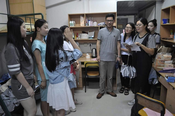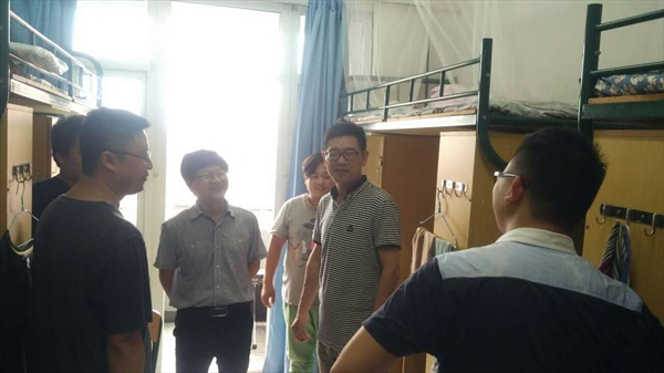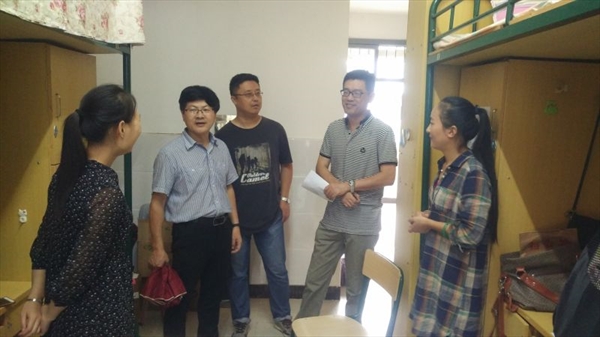 院长赵玉卿、党总支书记刘青松、副院长王文韬、副院长王志毅,在学院辅导员、新生班主任及学生干部的陪同下,走访新生寝室,亲切看望慰问了全体2016级新生。此次走访让新生们真切感受到来自学院的温暖,老师们和学长们的关怀。老师与同学们友爱的互动冲淡了新生们的不安与局促,加深了新生们对大学校园的憧憬。