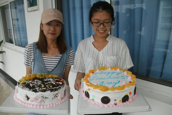 团委学生会策划了一个教师节送蛋糕,为老师送去祝福的活动。这天,学生们在蛋糕店精心制作手工DIY蛋糕,将自己的感恩之情寄予蛋糕之中,用自己的双手为老师送上独一无二储存着满满祝福的蛋糕。