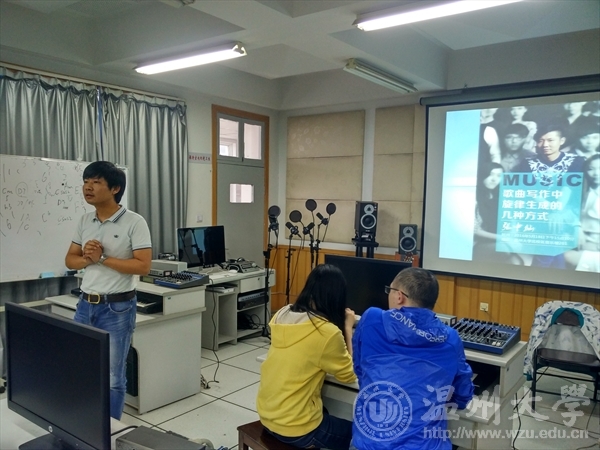 在讲座中,张中灿老师老师深入浅出的为同学们讲解了在旋律生成中的几个注意点,并着重强调了节奏对于旋律生成的重要性。在讲座中张中灿老师还就依词谱曲提出了自己的一些看法,赢得了在座的听众的阵阵掌声!在讲座中,张中灿老师还即兴改编了《涛声依旧》、《青春修炼手册》等大家耳熟能详的歌曲作为例证,使同学们都受益匪浅。