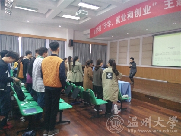 音乐教研员钱瑞华是温州市音乐教育界颇具影响力的一位优秀教师。首先,钱瑞华老师就现在中小学音乐教学中的不足,如教师普遍存在音乐专业术语匮乏、教学缺乏符号性、教育只流于表面而没有明确目的等现象,同时表示自己在工作学习中尤其注重这些方面;其次,钱老师主要从音乐教育理论的学习与铺垫、音乐体验的途径与方式、音乐课例的观察与分析三个层面,逐一进行解读,在讲到教学中使用体态律动、情境再现等方法时,钱老师邀请台下所有学生参与互动,在学生们的积极配合下场面气氛活跃、有趣,使大家更深刻地体会到音乐教学的乐趣和内涵;讲座临近结束时,钱老师总结了此次讲座的主要内容和意义,并表示音乐教育的最终高度为情感,并以此达到音乐教育的目的;最后,JJGirls