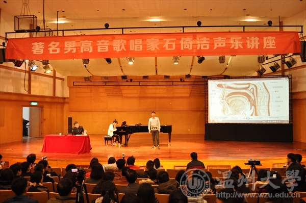 的学生代表分别进行了示范教学。在教学中,石倚洁老师充分展示了其高超而又精湛的声乐技巧,并用幽默风趣的语言让同学们领会到声乐的魅力。整场讲座掌声不断!