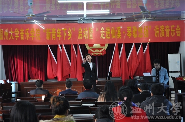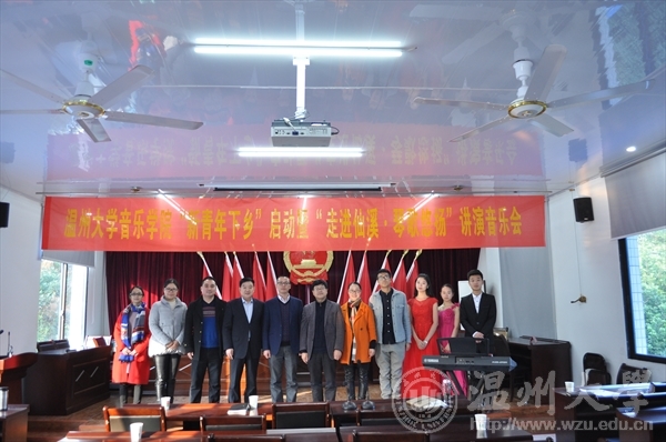 刘玉亭老师主讲。刘玉亭老师用他生动风趣的语言为仙溪镇观众讲解了声乐的一些要领,并亲自演唱了几首乐清当地的民歌,赢得了观众的阵阵掌声。台下的观众与刘老师进行了交流互动,刘老师也对观众的问题一一作出了解答。在讲演音乐会的末尾,JJGirls