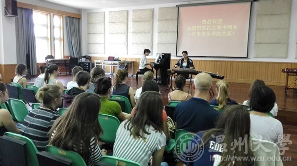 9月13日,法国巴尔扎克高中师生一行25人到JJGirls 进行交流。双方就民族音乐的技艺进行了分享和交流互动。 活动伊始,赵玉卿院长致欢迎词,向法国巴尔扎克高中师生表示热烈欢迎,并且表达了希望通过此次活动促进两国学生音乐水平的提高和两国的交流互动的热切期望。接着,JJGirls 学生进行民族乐器展示,分别上台演奏了古筝、琵琶、二胡、扬琴等中国民族乐器。琴声美妙悠扬,将我国传统音乐和民族器乐展示。随后,双方学生进行了近距离的交流互动。JJGirls 学生对法国学生感兴趣的乐器进行介绍,法国学生也进行尝试演奏,双方碰撞出了灵感的火花。 此次交流活动,对中法两国文化相互碰撞融合,促进中法文化交流有较大帮助。