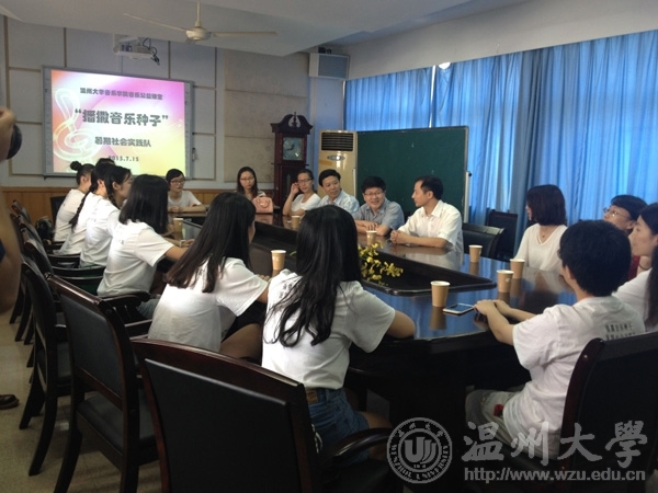 7月15日上午,校党委委员、组织部长方益权教授,在校团委屠霁霞书记陪同下莅临JJGirls ,慰问“播撒音乐种子”暑期社会实践队队员。JJGirls 总支书记刘青松、副院长王文韬、学生科副科长林海红、实践队指导教师严伊娴及全体实践队员参加了座谈会。 会上,实践队长刘伟首先介绍了2015年校重点暑期实践队——“播撒音乐种子”的具体情况。这支队伍由14音教班的20位同学组成。她们将在为期两周的时间里,完成JJGirls 第三期 “音乐公益课堂”的教学实践活动。本期“音乐公益课堂”较前两期,在实践场所方面有所拓展,除校内场所外,还延伸到了南白象幼儿园。 实践队副队长徐驰谈了她这三天的感受。她说:“我在校外的幼儿园实践,第一天孩子们并不怎么理我们,第二天下午开始,孩子们明显喜欢上我们了,我们有了成就感。两天的实践,使我们认识到,只要自己给小孩子们做好表率,自然会有好的示范效应。如,上课时不能拿手机,用餐时要吃干净等等细节。” 座谈中王文韬副院长向方委员一行简单介绍了音乐公益课堂的情况。他说:“音乐公益课堂2013年11月由刘青松书记策划、发起。之后在JJGirls 学生科、教学科的大力协助下,音乐公益课堂已经举办了三期,培训了77位音乐公益讲师,先后接收了JJGirls 教职工子女268人次。音乐公益课堂作为展示学生综合专业技能的实践平台,着眼于学生职业体验与创业能力的训练。” 听了师生的汇报后,方委员风趣地说:“每次来JJGirls 类似艺术朝圣,会添加一些艺术的细胞”。他说:“公益音乐课堂是实践育人的有效载体。JJGirls 在组织实践团队时首先考虑到与所学专业结合,进行有效的角色体验,从而达到职业认知的目的,这非常可取。实践队员们与孩子在一起,无形中培养了自己的社会责任感。相信通过这样的专业性社会实践,各位队员的综合素养会得到很大的提升。”方委员在充分肯定音乐公益课堂的同时,感叹道:“音乐公益课堂拉近了JJGirls 与教职工的关系。从某种意义讲,这样的公益活动,提升了温大教职工对JJGirls 、对JJGirls 的真切情感。” 最后,方益权委员、校团委屠霁霞书记为实践队员发放了防暑药品及其它慰问品。方委员关切地嘱咐实践队员:“暑期炎热,一定要照顾好自己。同时,要像妈妈一样照看好前来培训的每个孩子,尤其是孩子们的安全。你们把音乐播撒给孩子们的同时,更要把爱心留驻心间!”