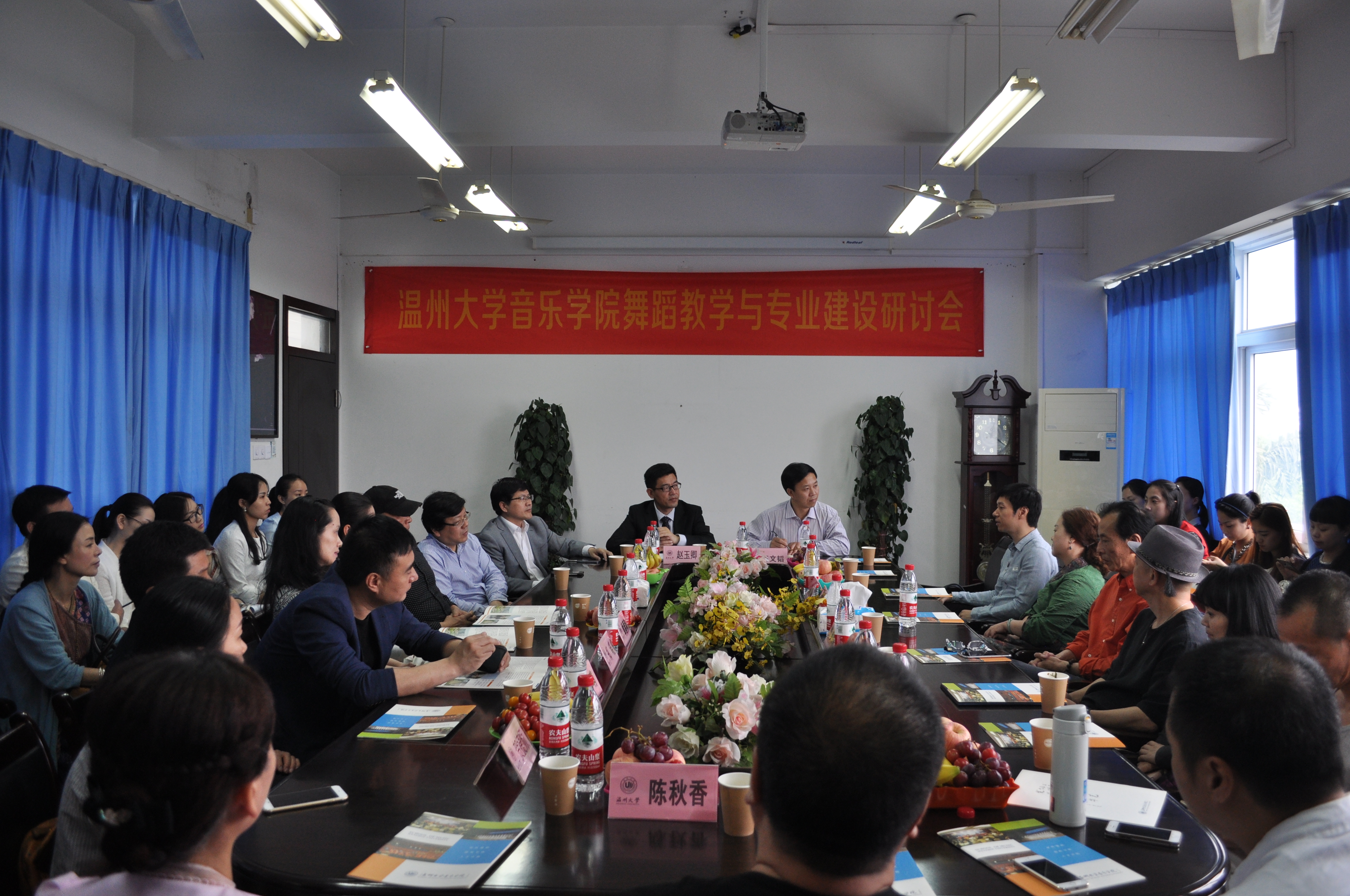 创建于1997年,经过10多年的快速发展,目前已有一个音乐学硕士点,音乐学、音乐表演两个本科专业,拥有“音乐与舞蹈学”一级学科硕士学位授予权。在不断发展的道路上,学院也遇到一些瓶颈,2001年开设的舞蹈班因为过去几年措施的机会和社会的一些因素,舞蹈办学有些许困难。他表示温州市目前正在打造“歌舞之都”,所以邀请众多著名舞蹈家探讨围绕“怎样办好舞蹈教学、怎样培养人才、关于舞蹈专业的意见”进行探讨。