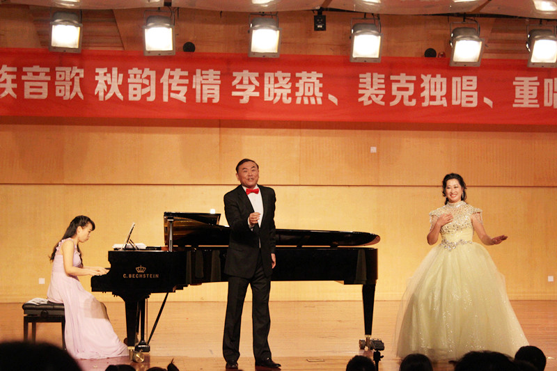 北校天瑞音乐厅演出的裴克、李晓燕中国民歌独唱、重唱音乐会隆重拉开帷幕。