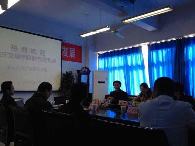 王文韬副院长主持,会议伊始,王文韬副院长以东道主的身份对我院的师资力量、学生状况等基本情况作了简单的介绍。重庆文理学院的四位老师就学校“60几位老师教1000多名学生”的现状,提出了音乐学科师资力量有待提高,以及控制学生数量、提高教学质量等相应措施,并表示在这方面应该借鉴我院。随后,对方老师又向我院老师提出了教学中存在的具体问题,我院参会的各位老师热情的解答,并同对方讨论、交流心得。最后,会议在一片融洽的氛围中结束。