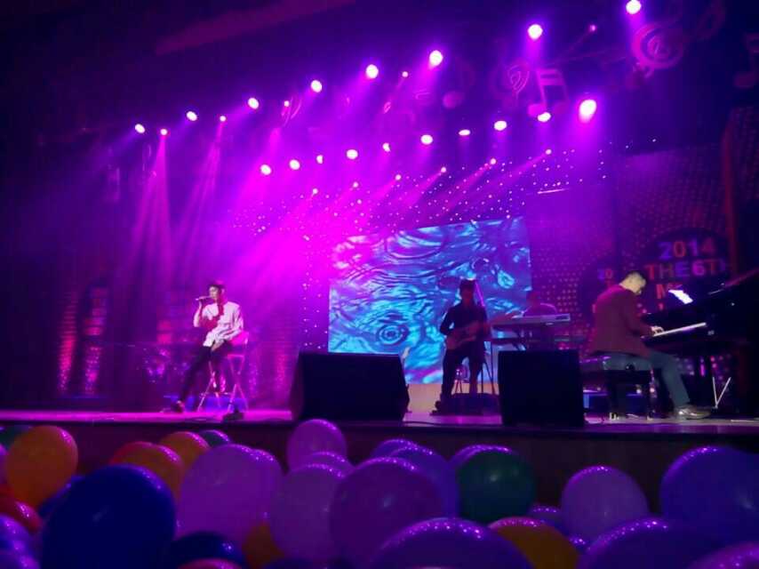 第六届艺术周的“前锋”演出,流行乐团的号召力并没有让大家失望,7点还没到,大礼堂内已经座无虚席。演出伊始,主持人王子文首先登上了舞台,并请出了今晚的神秘嘉宾——温州人民广播电视台的女主播胡红,接着向观众们介绍了JJGirls