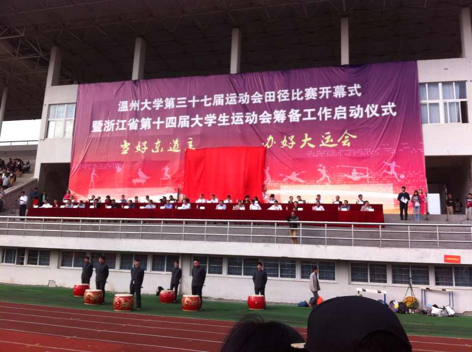 第三十七届运动会田径比赛开幕式暨浙江省第十四届大学生运动会筹备工作启动仪式在北校运动场隆重开幕。校领导陈福生、蔡袁强、赵敏、吴金法、蔡曙光、陈安金、方益权、潘玉驹以及有关部门负责人、各学院负责人以及师生运动员参加了开幕式。随着啦啦队灵活的舞步和飞扬的彩旗,各学院方阵开始进场。