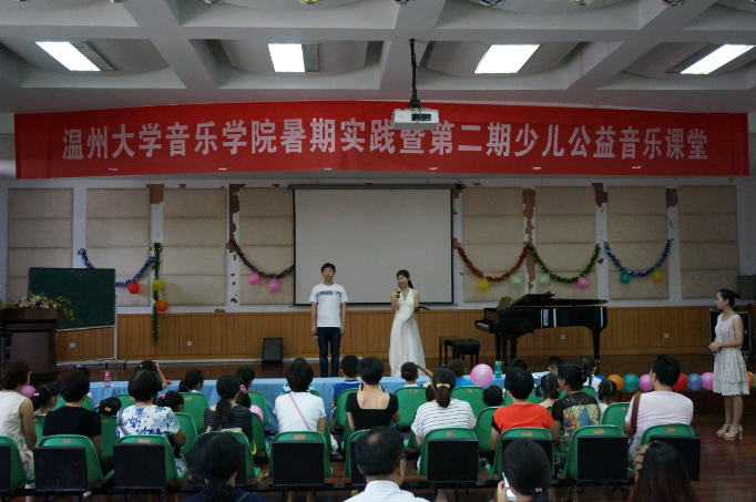 展演结束后,实践队成员们给小演员们分发了礼品。最后小朋友们与老师们以及校领导合影留恋,大家的欢声笑语响彻了音乐报告厅,本次暑期社会实践也到此圆满落幕。