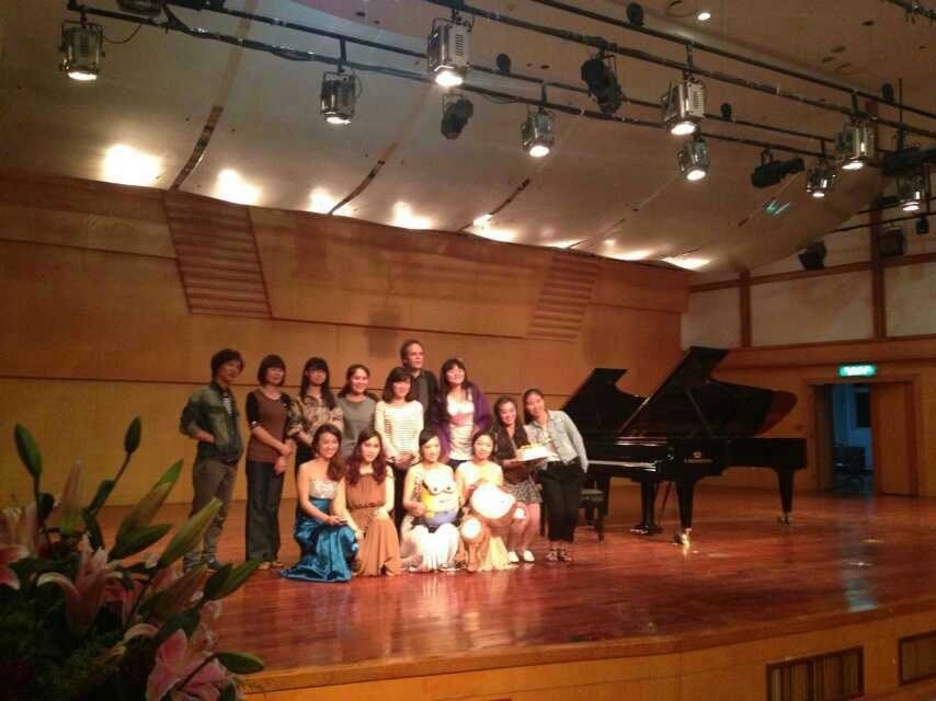 2014年5月8日晚六点半,一场激动人心的“THE 2014 RAIN SEASON PIAO SESSION”钢琴音乐会在北校天瑞音乐厅举行,这是一场四位钢琴专业毕业班女生同台上演的毕业生音乐会。音乐会的指导老师是我院外籍教授亚历山大。而这四位演绎者分别为亚历山大教授的学生:涂晶晶,易情情,林璇璇,余妙圆。我院党总支刘青松、副院长李杰鹏和全院师生一起观看了本场音乐会。