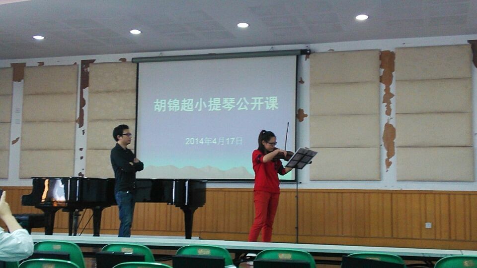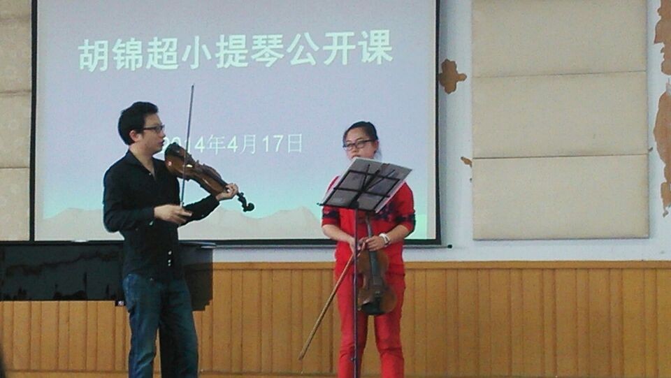 小提琴教师胡锦超。出席本次公开课的有 2012、2013级器乐主修、选修学生,以及器乐教研室全体教师。
