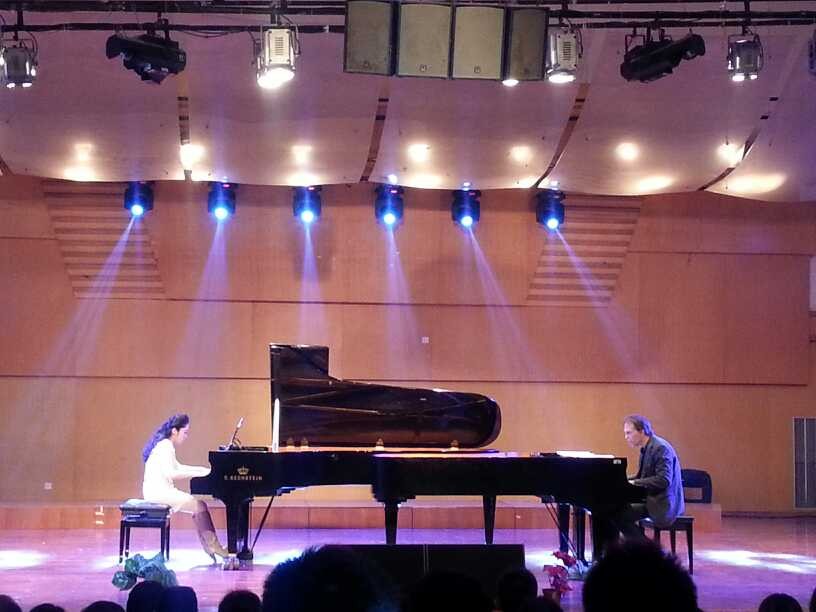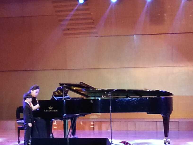 之后,是溯初学区十佳冠军易攀攀大展歌喉,一曲《离不开你》唱出最美好的爱情,现场的气氛被点燃。Alex和莫颖老师双钢琴演奏的《D大调卡农》与《亚历山大的爵士乐队》引起现场观众的热烈关注,琴声让大家都如痴如醉,仿佛来到了钢琴音乐的天堂。这之后,是流行乐团团员高佳伟演唱的《洋葱》,陈选择原创歌曲《让心知道》,都让大家内心十分感动。由莫颖老师和嘉宾何靖、张海敏一同演出的室内乐三重奏,感动在这一刻渲染全场。情歌王子傅克想的《小情歌》,可爱熊猫严志逊的《别找我麻烦》都令人觉得内心为之心动。张中灿张老师作曲的《童年记忆》是由莫颖老师和她的儿子付熙恩一同演绎的,稚嫩的琴声,加上莫老师精湛的琴技,引起大家的热烈掌声。之后就是王皓璟演奏的献给小猫咪咪的《咪咪与闹钟》,李杰鹏副院长与合唱队合作的《你快回来》,仇慧敏演奏的《Jazz Fantasy on Mzart》,张中灿老师与莫颖老师钢琴弹唱的《第十三首歌》,都赢得现场的热烈掌声。