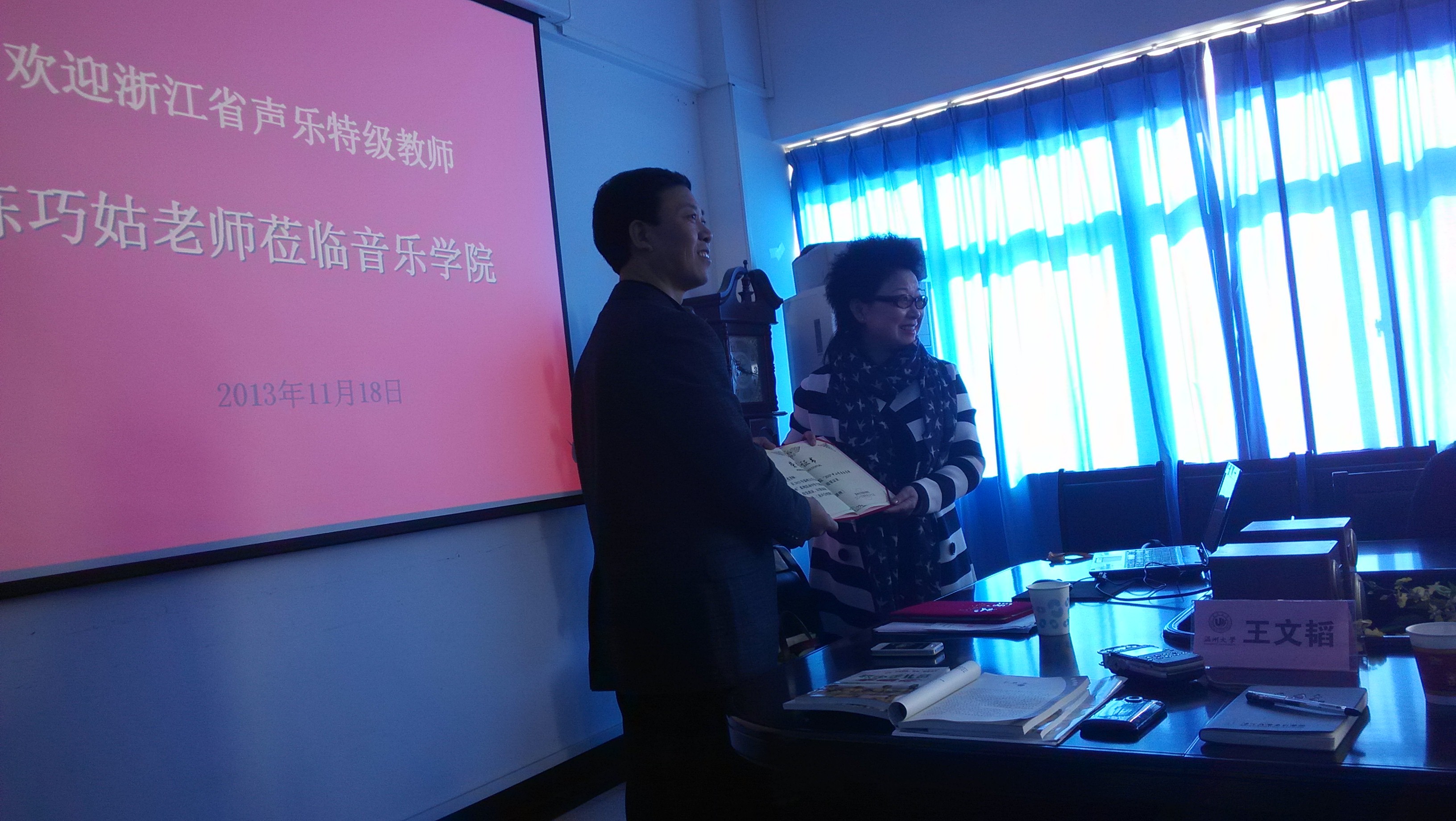 11月18日上午九点半,温州市少艺校的陈巧姑老师在音乐楼309为“少儿公益音乐课堂”的讲师们开展了一场别开生面的学术讲座,指导讲师们如何组建辅导童声合唱团。