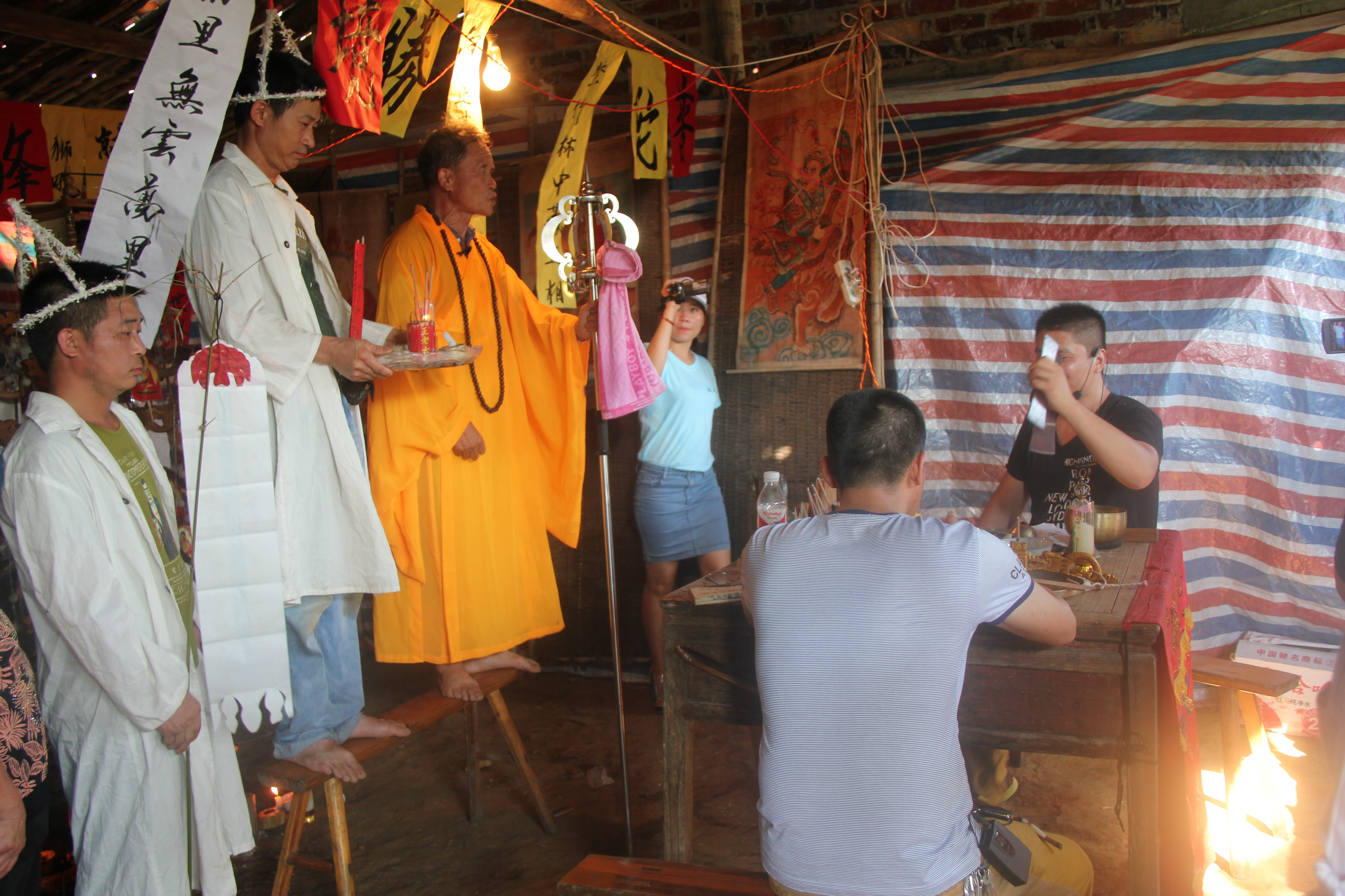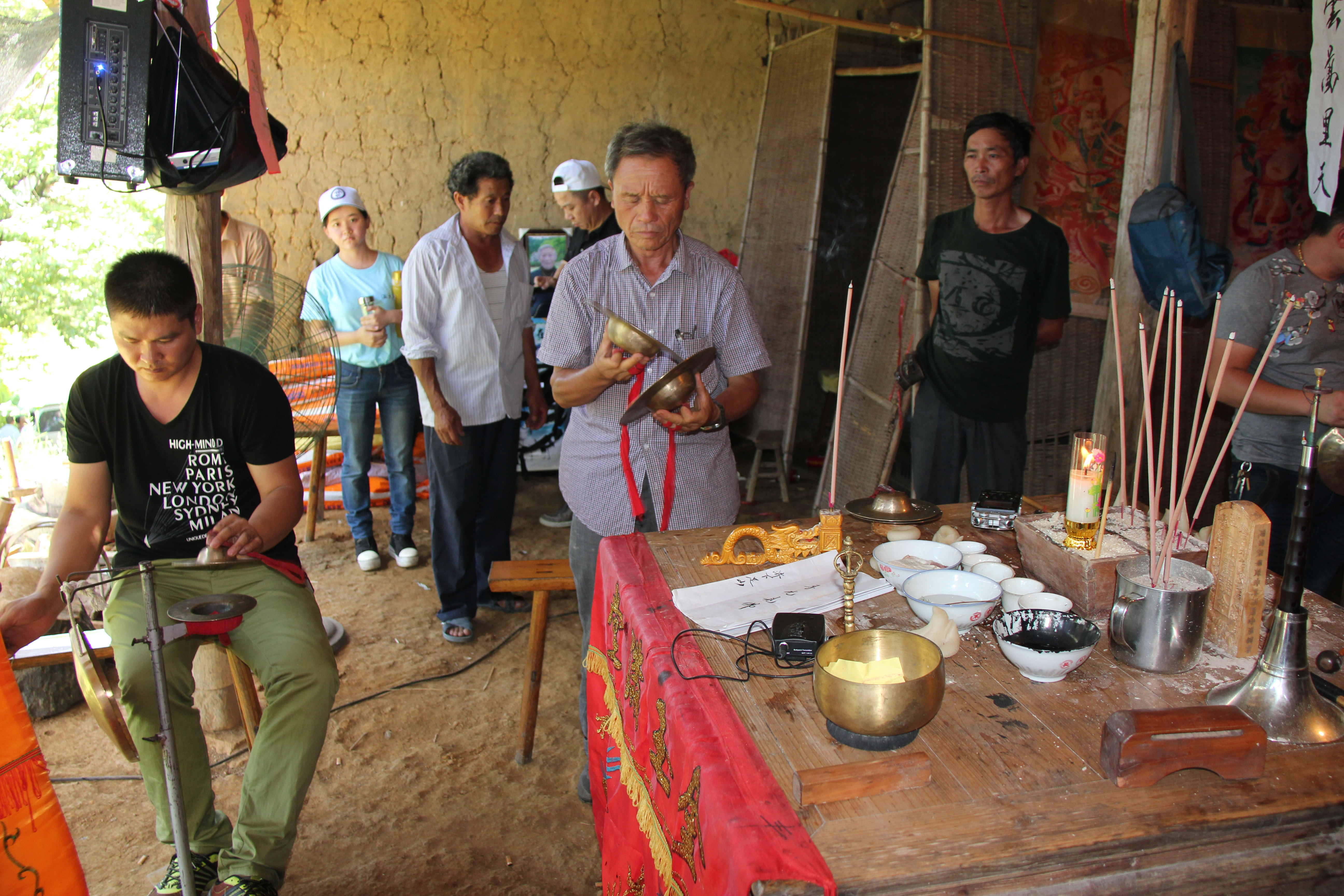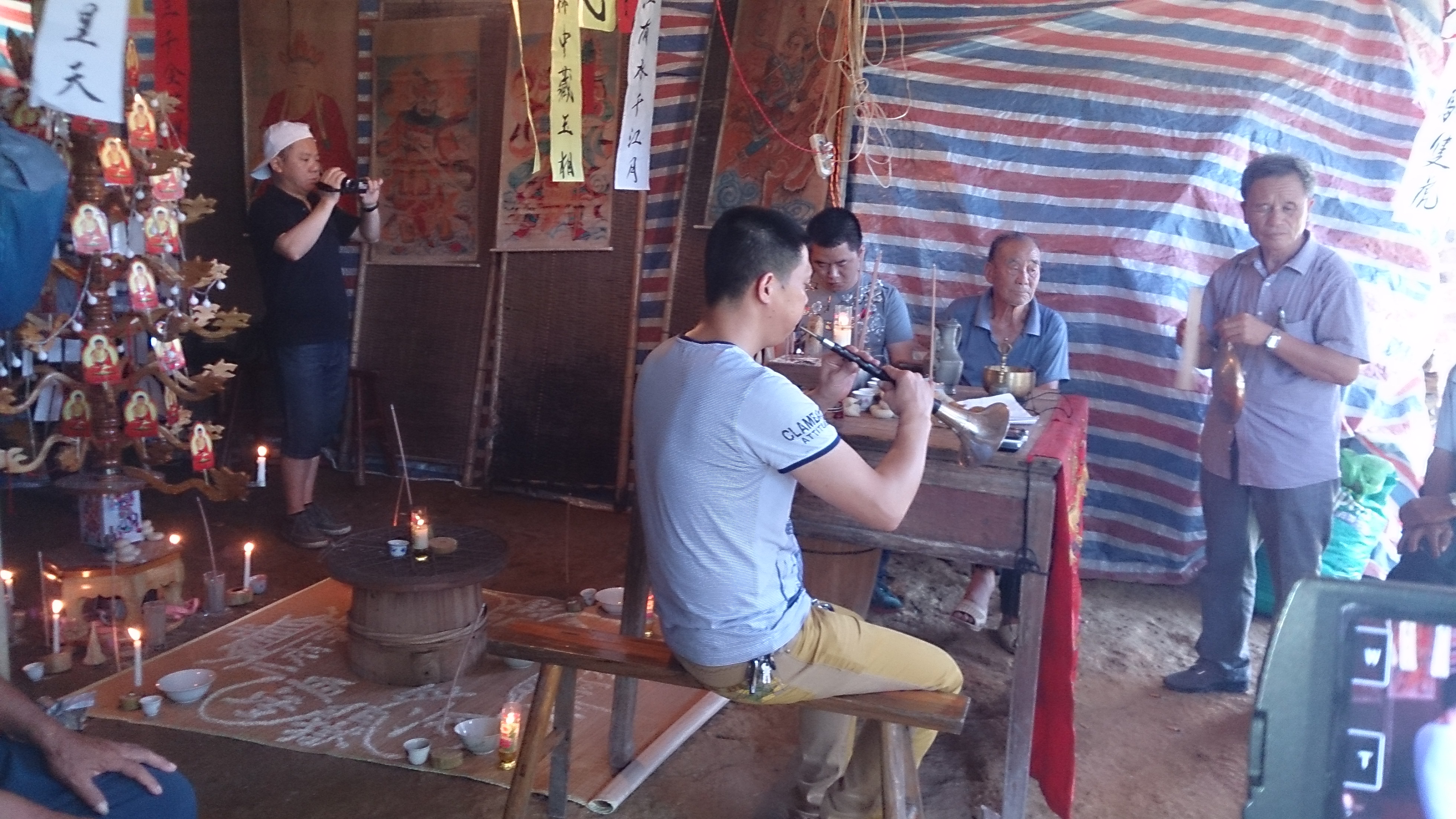 另一组跟老师一起去拍摄畲族的丧葬的过程,觉得很多是我们当地没有的,在拍摄的过程中虽然很多的东西以前没有接触过也有那么一些累。但是,觉得还是很满足很有收获,虽然在那拍摄一整天看见的更多是老师的认真跟投入觉得他们很用心。我们应该像他们学习,在老师的指导下觉得学到的东西很多。(蒋娟丽)
