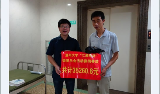 转交给殷舒父亲“汇爱殷舒”募捐微音乐会全校师生35260.6元善款