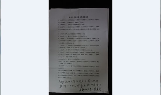 转交给殷舒父亲城市学院全体教职工5000元善款