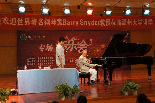 的百瑞·施耐德教授(Barry Snyder)是现今美国最为著名的钢琴家及教育家之一,其艺术生涯最为重要的阶段为:荣获“被称为世界五大赛事之一的美国范·克莱本国际钢琴比赛”1966年的亚军,在此届克莱本大赛中,施耐德教授同时荣获美国联盟大奖及最佳室内乐特别奖。近年来,大师的演出活跃于世界舞台,讲学足迹遍布于世界各地。
