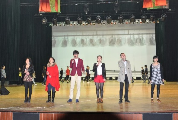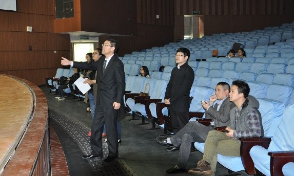 2013年4月19中午11点,我院院长赵玉卿教授、党总支书记刘青松老师、团委书记林海红老师前往我校大学生活动中心演艺厅观看了我校校庆节目的排练