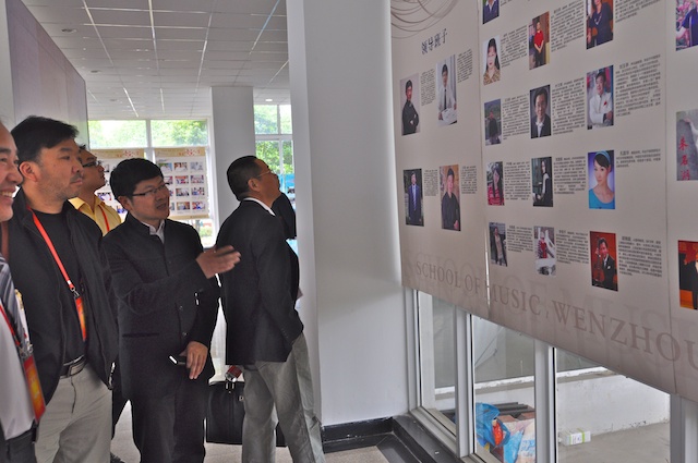 最后,观摩团成员还饶有兴趣地参观了缪天瑞先生“百年音乐人生”图片展,在学院楼前拍照留念。