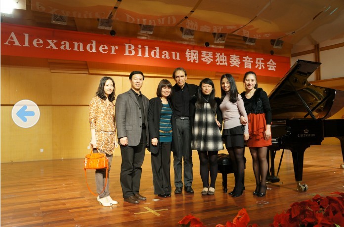 80周年校庆系列音乐会之“Alexander Bildau钢琴独奏音乐会”在北校音乐厅隆重举行。学院院长赵玉卿,钢琴教研组全体教师及全体研究生,本科生都早早到了音乐厅等待音乐会开始, 现场座无虚席,观众秩序井然。
