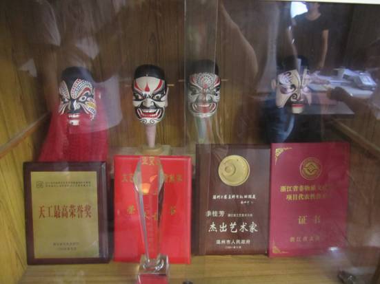 7月1日,温大寻美探索实践团队在泰顺木偶剧团团长王景快老师的带领下,来到全国著名的木偶制作大师季桂芳老先生的家中,探索木偶制作的真实一面。季老先生引领实践队员参观了他的木偶工作室。在工作室里陈列着各种类型的小木偶,如济公,梁祝,彝族娃娃。其中最特别的是一尊雕刻精美的陈十四娘娘。而房间内高墙上悬挂的两张发黄的旧照片1978年老先生与全国工艺美术届代表与当时国家领导人的合影以及橱窗上摆放的各种奖杯和天功奖等荣誉证书,也证实了季老先生的在全国的影响力和巨大成就。季老先生还给大家现场演示了木偶的制作,其精湛的刀工让大家叹为观止。另外,老先生简单向我们介绍了几件作品,讲解了有关木偶的制作流程,讲述了他从事木偶制作的经历。最后,季老先生还兴致勃勃的带大家参观了他曾在温州博物馆展览的几十件大型的戏曲作品,各种面部栩栩如生、服饰精美、制作精良的木偶,是老先生十几年的心血所在。临走时,老先生还送给我们几个小木偶作为纪念。